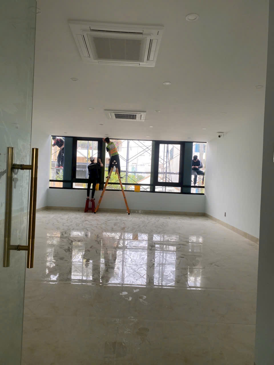 - Sàn nhà: Dùng máy chà sàn công nghiệp, hút bụi – hút nước, xử lý các góc khuất thủ công.